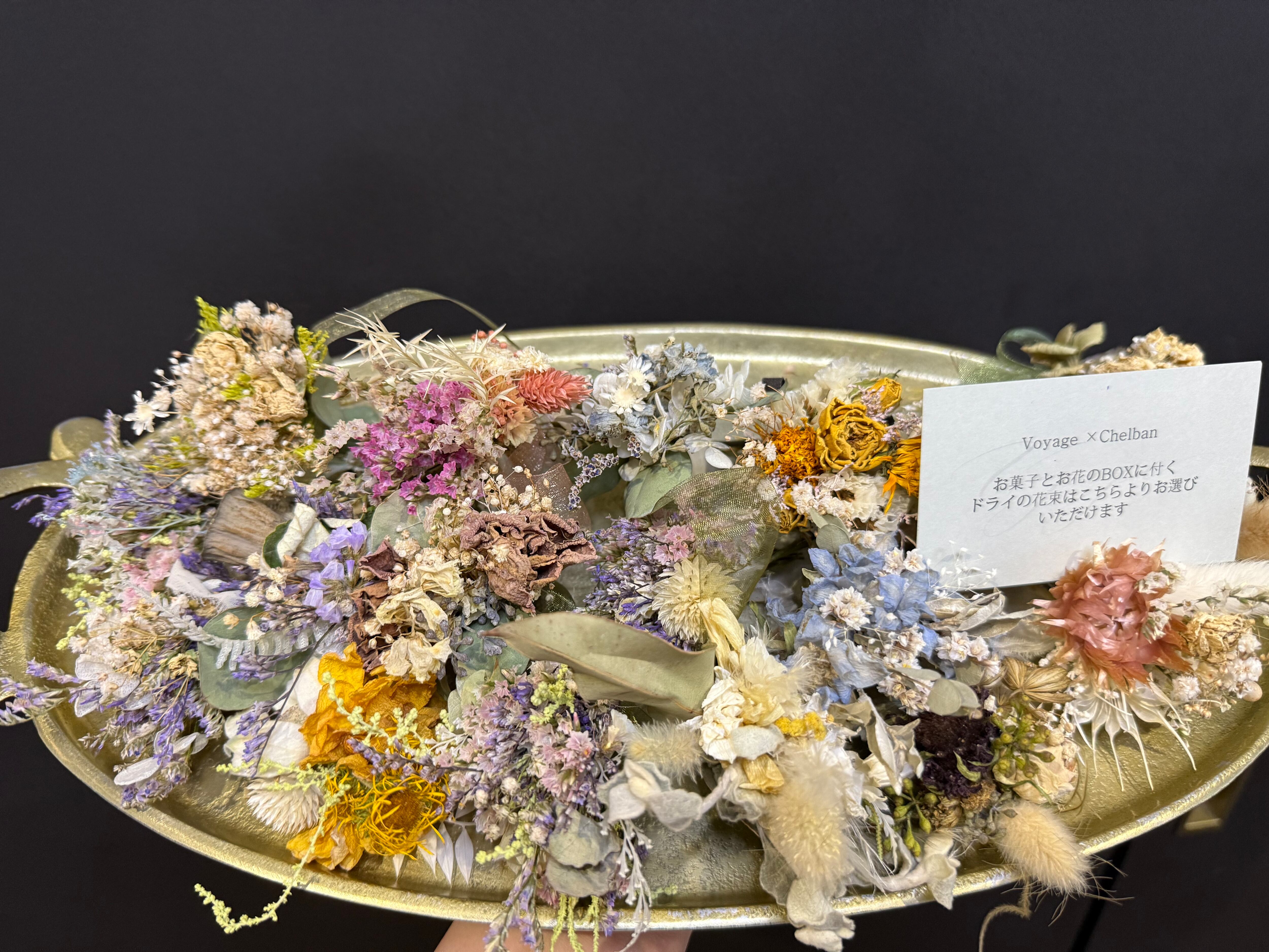 ・小さなドライの花束と焼菓子のセット。